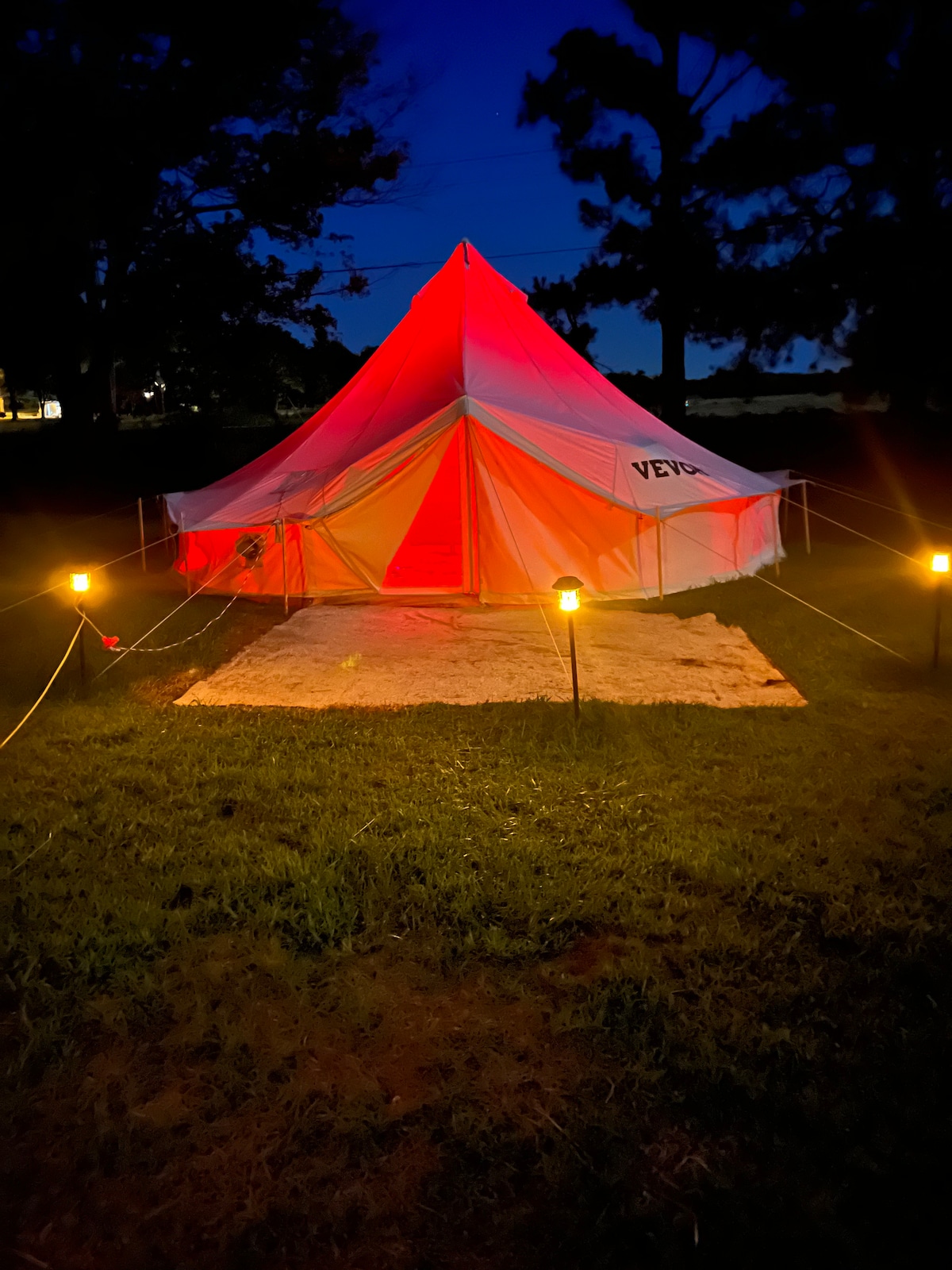 Nestled in Red Rock’s Glamping Hub, The Crest invites you to unwind in style. This spacious wall tent features a minisplit for year-round comfort, a mini fridge, microwave, a cozy Queen bed, and a Twin bed. Enclosed by a private fence, it blends rustic charm with modern luxury, offering a serene retreat amidst nature’s embrace.