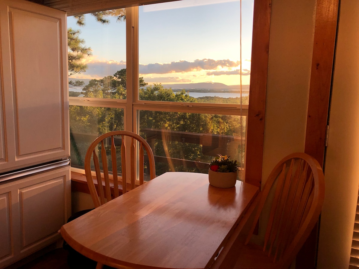 Welcome to Suite Serenity, a luxury cabin tucked away in the foothills of the Ouachita Mountains. The cabin has large picture windows to enjoy the stunning views of Sardis lake and surrounding mountains. Every room in the cabin has a great view. Sitting by the fire while watching the sun set is so relaxing. There are camp grounds and a boat dock across the street providing a great place for recreation. Sand volleyball, swim beach, pavilion & hiking trails are a few of the amenities. Come enjoy!