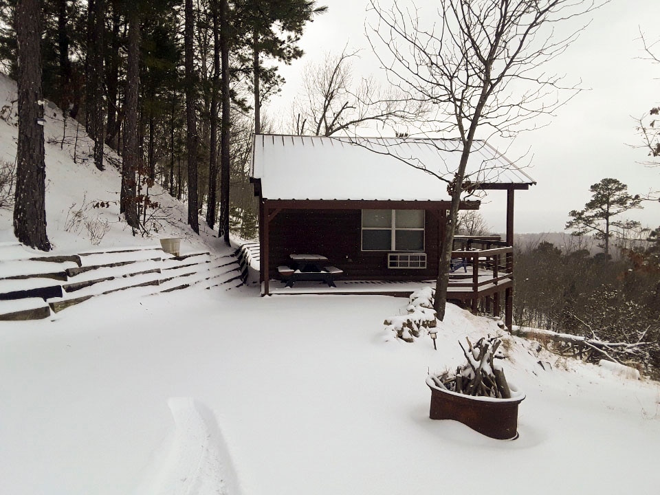 Rejuvenate on a peaceful and beautifully landscaped hillside property with a magnificent panoramic view of the Kiamichi Mountains. Relax in an aromatic hot tub under the stars. 1 king bed, 1 full bed, 1 bathroom NEW GUESTS check-in 2-9pm. We live here & want to meet our guests in person 😊. RETURNING GUESTS may check-in anytime. No pets. No fires/firepit. Follow us on FB for ongoing photos throughout each season of the year!