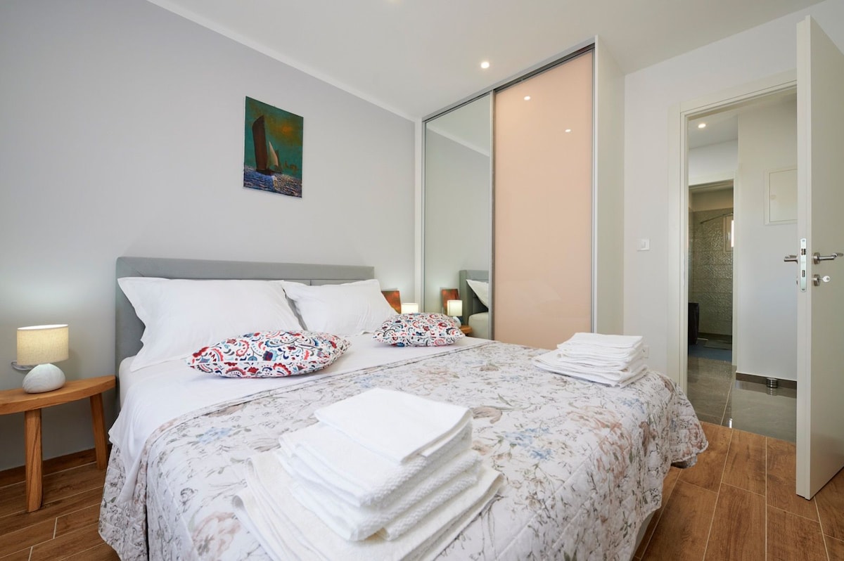 Willkommen in unserem brandneuen Luxus-Apartment auf der Halbinsel Čiovo! Die Wohnung, ist 100 qm groß und voll ausgestattet und bietet alles für einen erholsamen Aufenthalt. Genießen Sie die luxuriöse Ausstattung ohne Kompromisse. Das Apartment verfügt über eine große Terrasse und einen privaten Garten von 70 qm, der im Frühjahr fertiggestellt wird. Zudem erwartet Sie ein 40 qm großer Gemeinschaftspool, Perfekter Rückzugsort für alle, die Komfort und Privatsphäre in Strandnähe suchen.