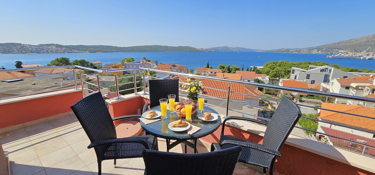 Quiet and peaceful,wurh beautiful garden and sea view and the bay of Trogir. Apartment is in quiet part of place,there is no noise from cars,other tourists or loud music from caffe bars.Apartment has beautiful view of the all bay Trogir.We dont allow loud music,partys or being loud especially after 22h. 300m from apartment is the main beach Copacabana with beach bars working till morning hours and you can enjoy in beautiful crystal clear sea.
