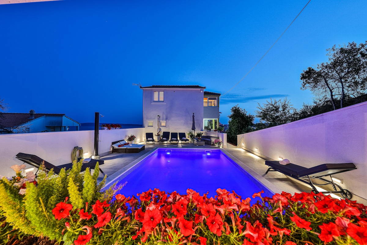 Villa A’More is a stylish private seaside villa with a heated pool and stunning sea views. Perfect for families or friends, it offers comfort, privacy, and a relaxing Mediterranean atmosphere. Explore the nearby UNESCO cities of Trogir and Split, or enjoy beaches, terrace, and pool — your perfect Adriatic escape.