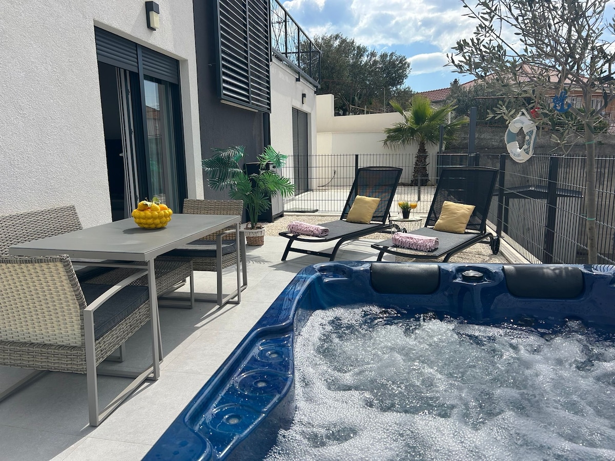 Private hot tub, large terrace and guaranteed free parking. Relax in a spacious apartment with a sea view, featuring your own private hot tub and a large terrace perfect for unwinding. The apartment offers access to a summer kitchen and a barbecue area located in the garden, ideal for outdoor dining and enjoying warm summer evenings. Situated in a quiet residential neighborhood, the property provides peace, privacy, and plenty of space — perfect for a stress-free holiday.