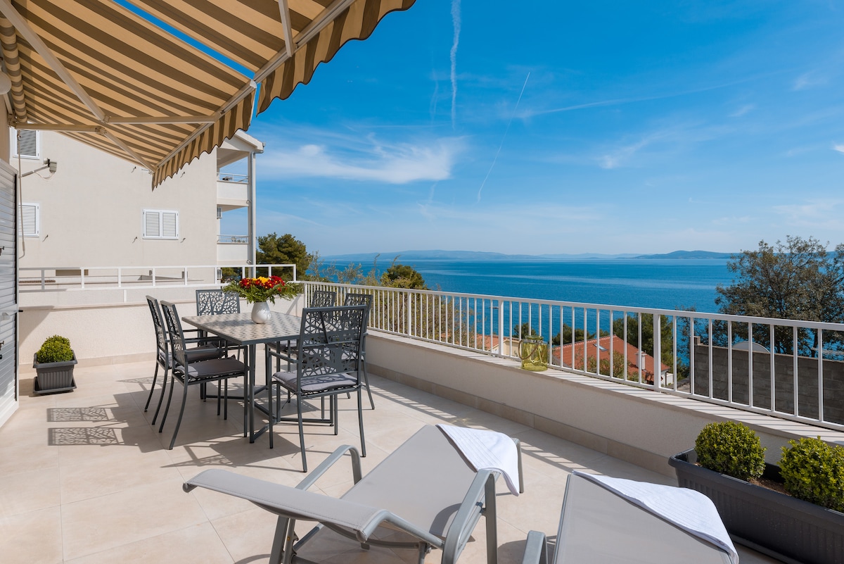 Apartment is unique because of its priceless sea view and gorgeous terrace (20m2) where guests can sit or sunbath and enjoy in view of surrounding islands such as Šolta, Brač, Hvar, Drvenik... Apartment is placed on the first floor with separate entrance included. It consist of two bedrooms, bathroom, living room with dining area and kitchen. Cozy decorated it provides you with intimate atmosphere.