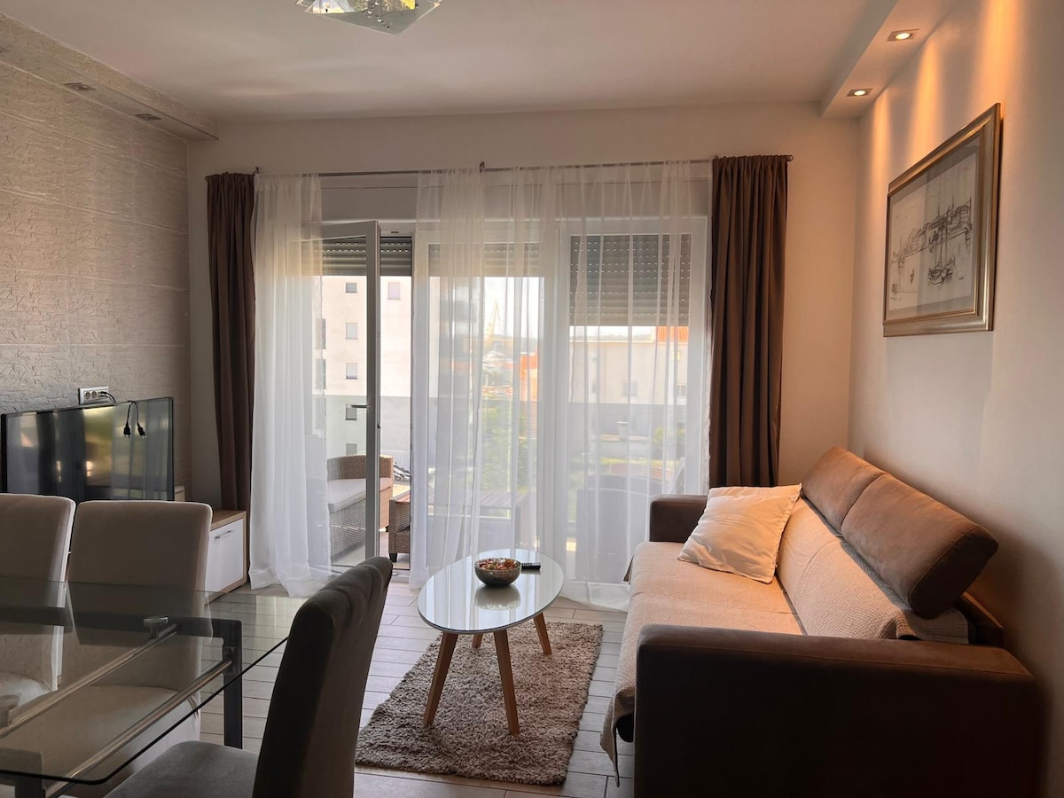 Apartment is located 30 meters from the beach, only the road is between the house and the beach. It is very large apartment in a big house in which me, my wife and small child lives, but we are totally separated from apartments, you have your own covered parking spot, garden, terrace and a big terrace separated from the apartment, everything you can see on the pictures. Wi fi, smart tv, cabel tv, pets allowed because of big property and also barbecue, table tennis is at your disposal. See ya!