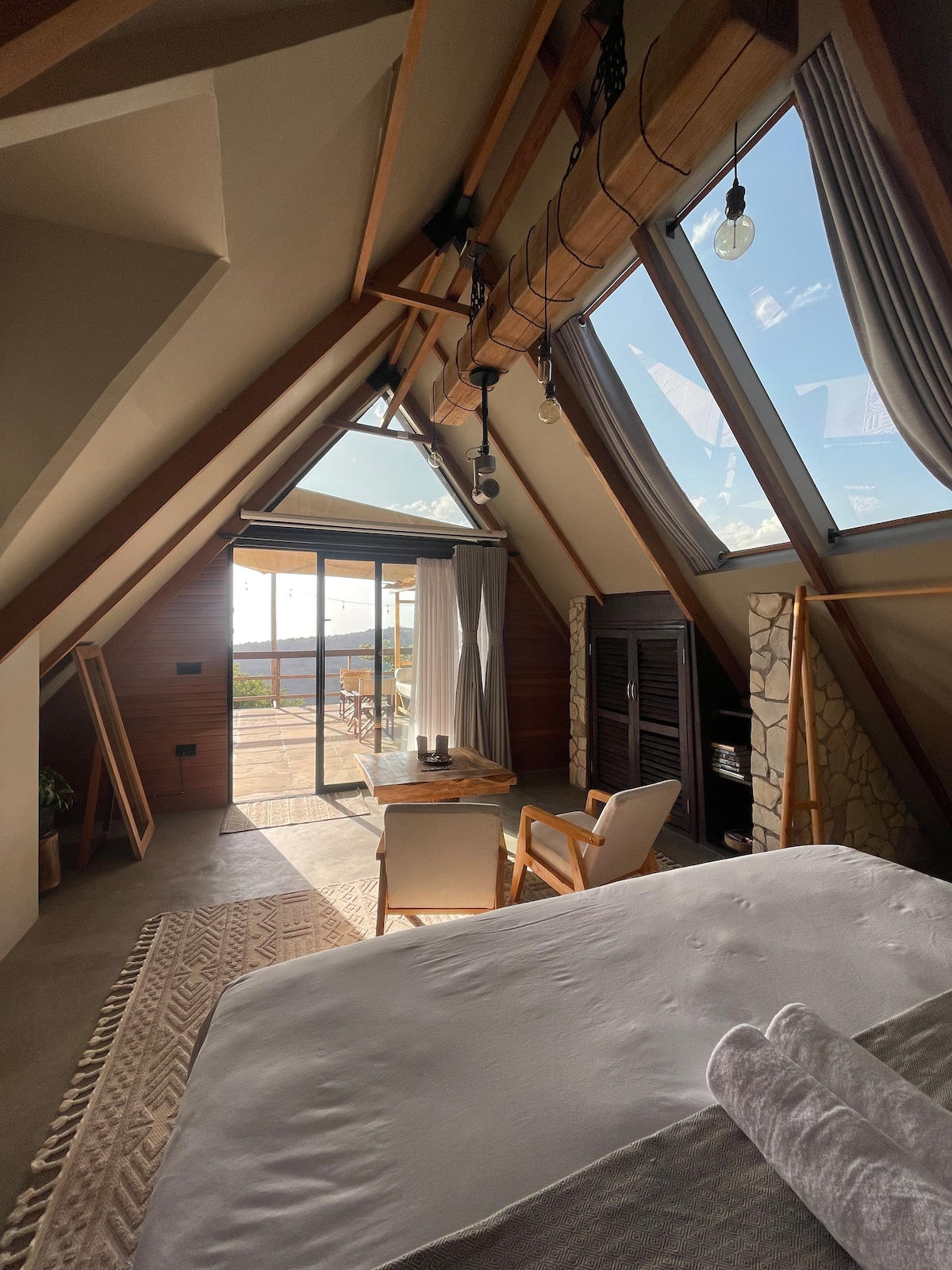 The Cave is a comfortable cottage on Champagne Ridge only 1 hour from Karen. Nestled against natural rock with floor to ceiling windows it offers stunning infinity views across the Great Rift Valley toward Lake Magadi and Tanzania. The Cave offers the ultimate feel in warmth and coziness, the perfect place to spend quality time with your loved one or as a solo traveler or creative writer looking for a safe retreat. The Cave is another marvel at The Castle on Champagne Ridge.