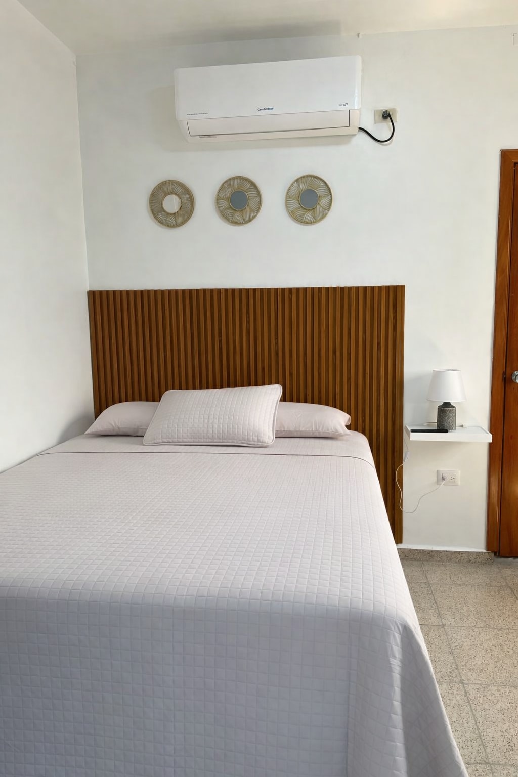 Hermoso apartamento céntrico, tranquilo y muy seguro, ubicado estratégicamente cerca de supermercados, restaurantes, bancos, tiendas, parques, clinicas, farmacias etc. •Espacio seguro y privado •Cocina completa con todo lo necesario para preparar tus alimentos •Sala acogedora •Sofá grande •Comedor para tres •Un baño completo •Un dormitorio cama Queen •Aire acondicionado •TV con cable •Lavaderia •Area de estacionamiento •Balcón privado •WiFi •Area social