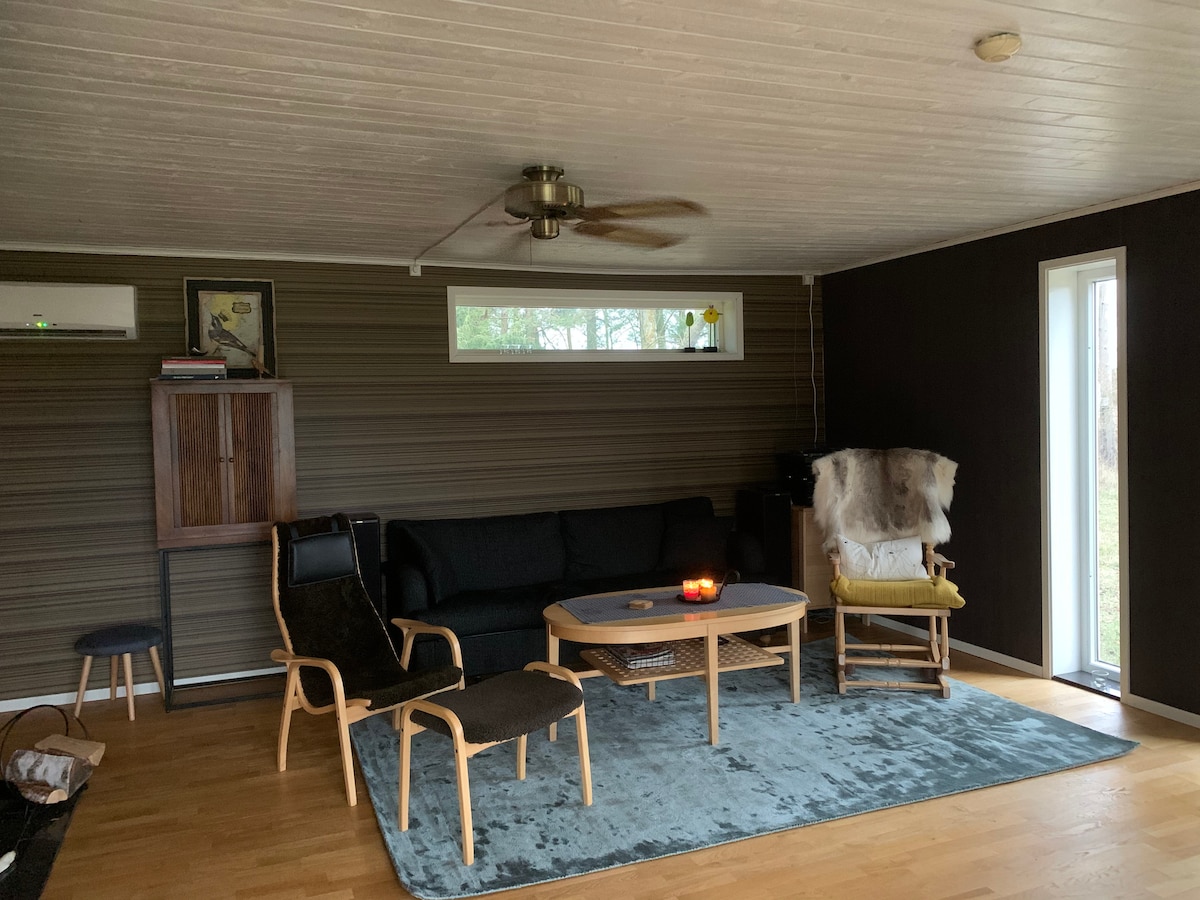 A tasteful cottage with double bed in a sleeping room and up to five madrases on a spacious loft. Sauna and veranda, BBQ, garden furniture, playground. Nice, quiet life at the countryside. Trampoline, lots of playgames and books. A great place for children! 200 m to bathing place with boat. This house is situated close to my own house, we will be neighbors during your stay. You are welcome! 25 minutes to Astrid Lindgrens World. Guidebooks on the surroundings are available at Basebo förlag.