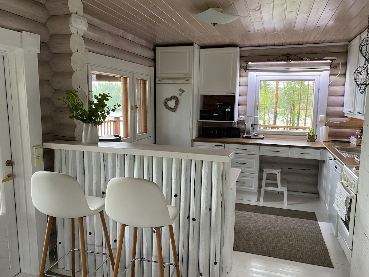 A cozy cottage between pines and the lake just in 2 steps from Saimaa. It is quite small inside (30 square meters) with a big open terrace and a green lawn in front of it. There are a Loft bed for 2 people with a view, a small kitchen, fireplace, sauna on woods inside the cabin. It is great to start your day from early swimming and yoga/breakfast at the terrace listening to birds songs and finish your day with a glass of wine taking pictures of a stunning sunset.