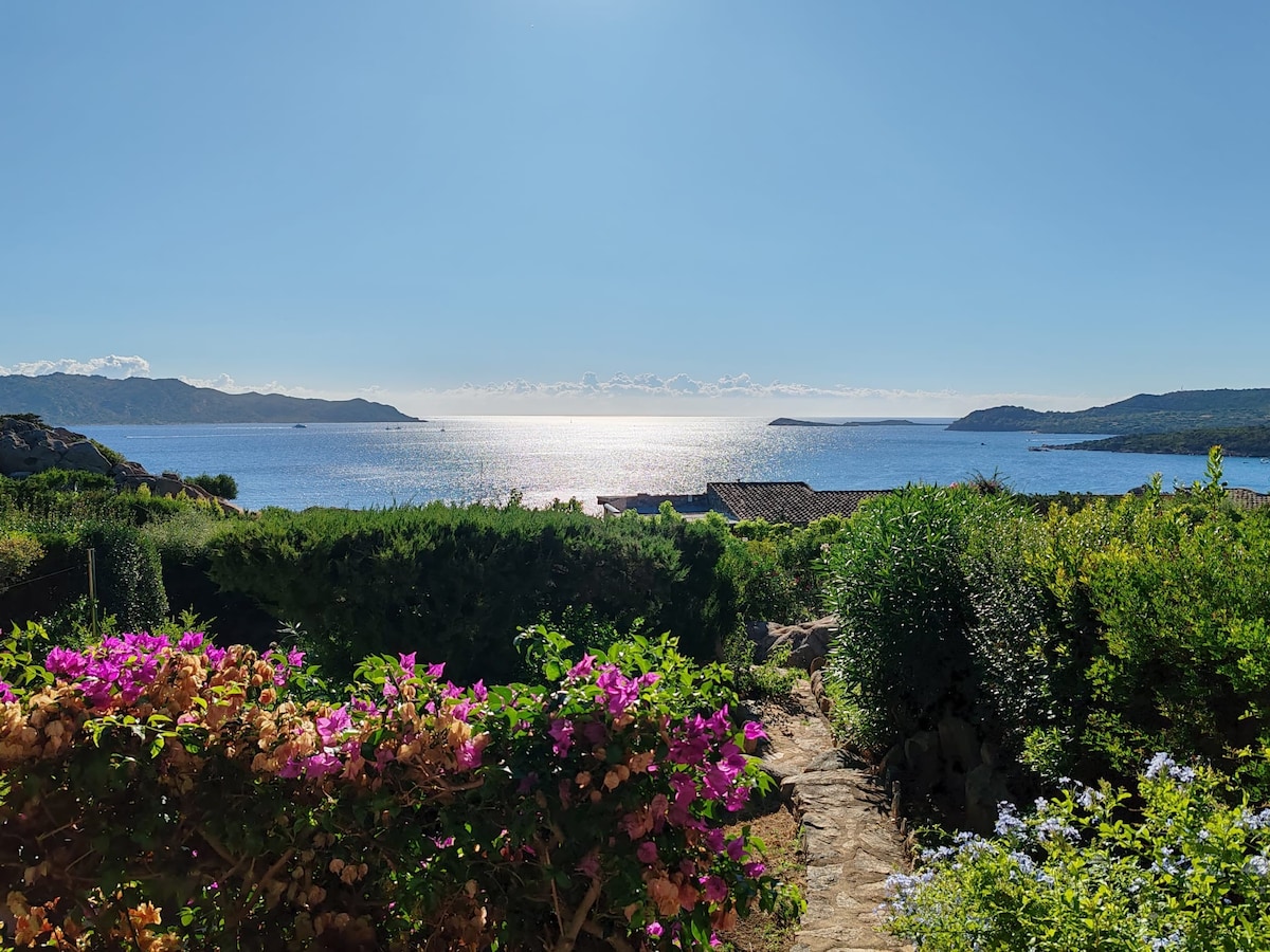 Very charming sea view villa designed by Jacques Couelles, the architect choosen by Prince Aga Khan to built Costa Smeralda, with a 1000 sqm private garden inside a resort with swimming pool (3 minutes walking) and direct access to the beach (5 minutes walking). The swimming pool is open from 1/06 to 15/9 with a lifeguard. In the other months the pool is close. Private outdoor car parking. 5 minutes driving from Porto Cervo.