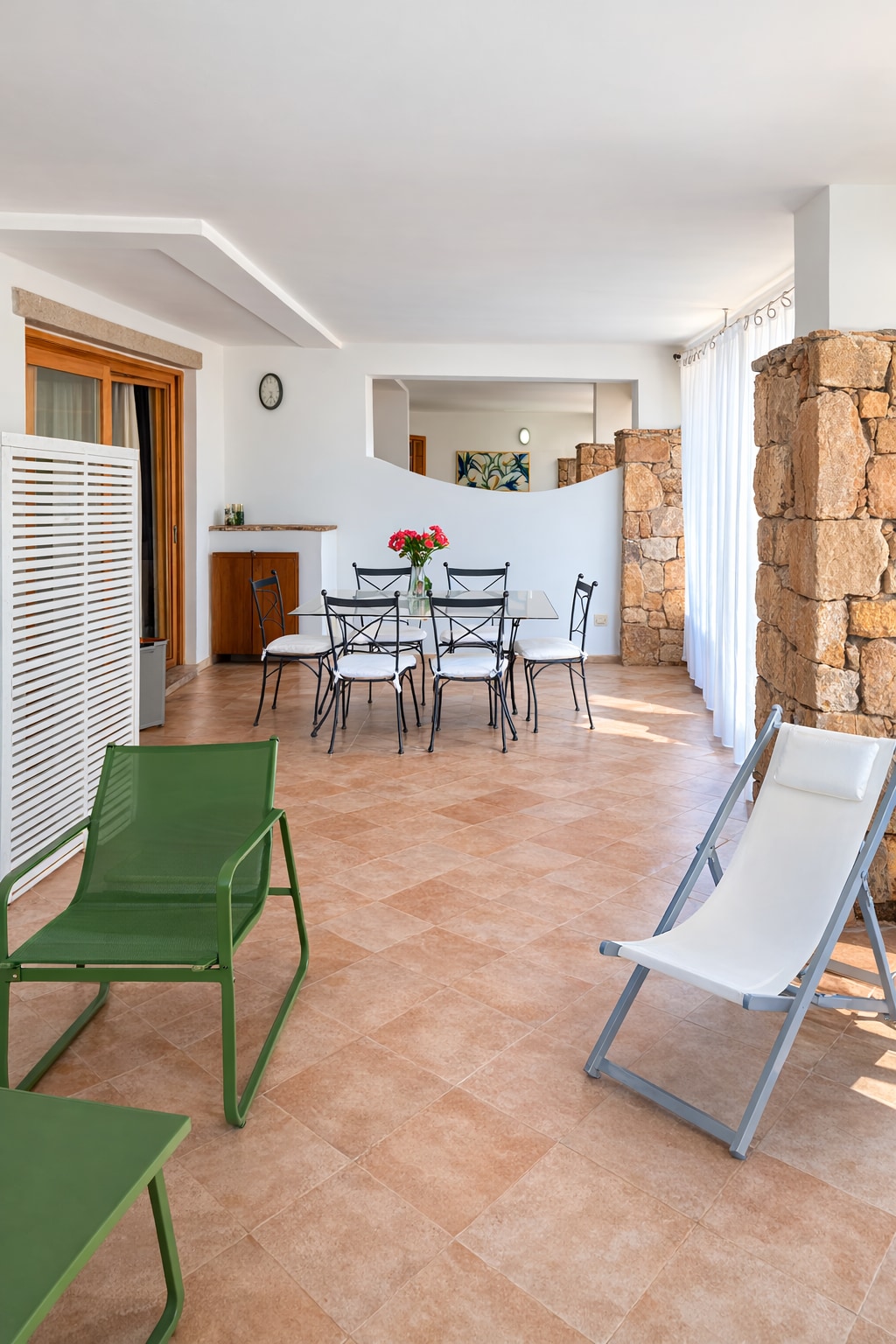Appartamento indipendente all'interno di un B&B. L'appartamento dispone di una ampia camera da letto con letto king size, bagno confortevole e sala con angolo cottura. Tutta la proprietà si trova su terrazza vista mare, che vi permetterà di ammirare contemporaneamente l'isola di Caprera, l'isola di Santo Stefano e Palau.