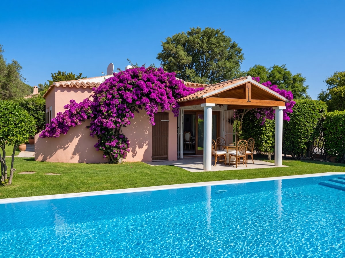 Villa con piscina dotata di ogni confort. La villa è all' interno di un complesso residenziale, la posizione è ottima per raggiungere le numerose e bellissime spiagge della zona così come porto e areoporto di Olbia che distano solo pochi minuti di auto.