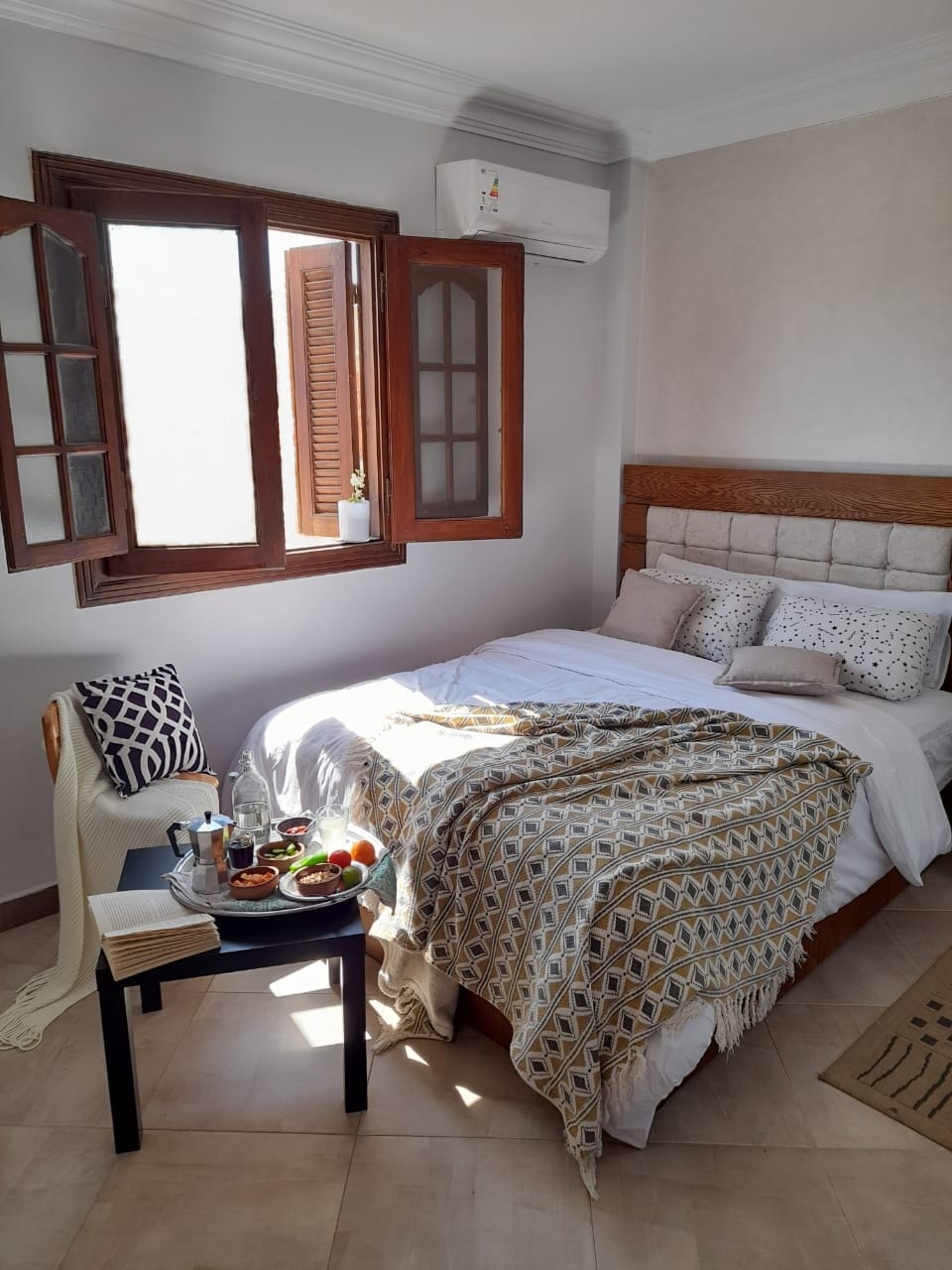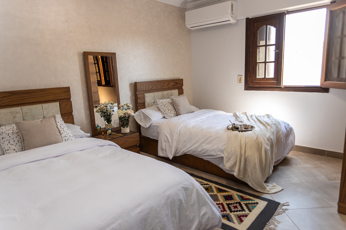 Discover Cairo from my cozy downtown apartment! Nestled in a serene local neighborhood, newly furnished retreat offers convenience and comfort. Just 5 minutes from Saad Zaghloul Metro Station and the Institut Français d'Égypte au Caire, and steps away from the popular Halawa Cafe. Enjoy complimentary access to a GYM and a VIP gaming room, plus a free area tour. Relax in the inviting living room, catch up on TV, and cook in the equipped kitchen. With 2 beds, rest easy for a memorable stay!