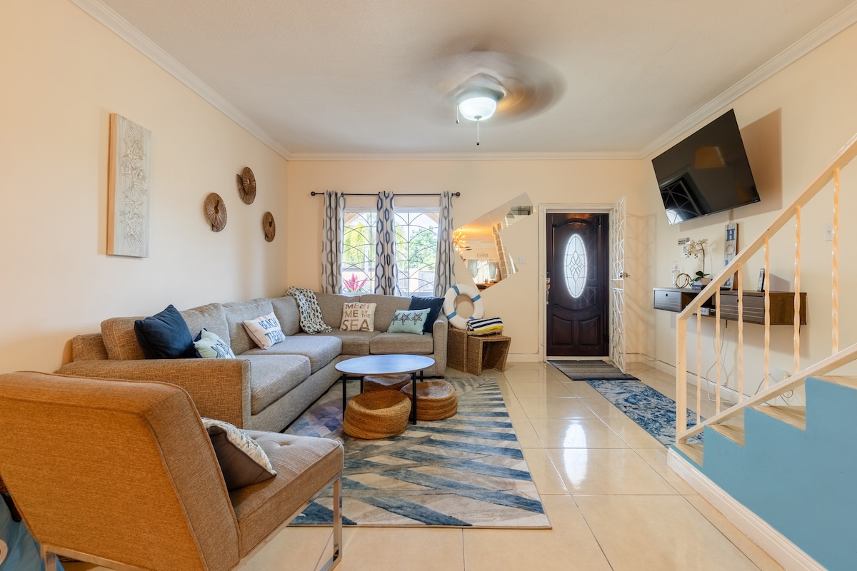 Luxe Modern Centrally-Located Open concept newly designed with modern comfy furniture.This 7 beds , 4 bedroom/ 2.5 bath is located in Private Gated community with Sparkling Pool.Stainless steel appliances, tile floors, chef’s Kitchen with/pots and pans. Large Master bedroomw/King bed, sitting area, Full Bath, Private Patio.5 Minutes to Dunn’s River, MysticMountain,Dolphin Cove, Starbucks, Beaches.Fenced back yard. Free parking, Starlink, two 58inch Smart Tv, Disney Plus,Netflix.Pool Table/Games