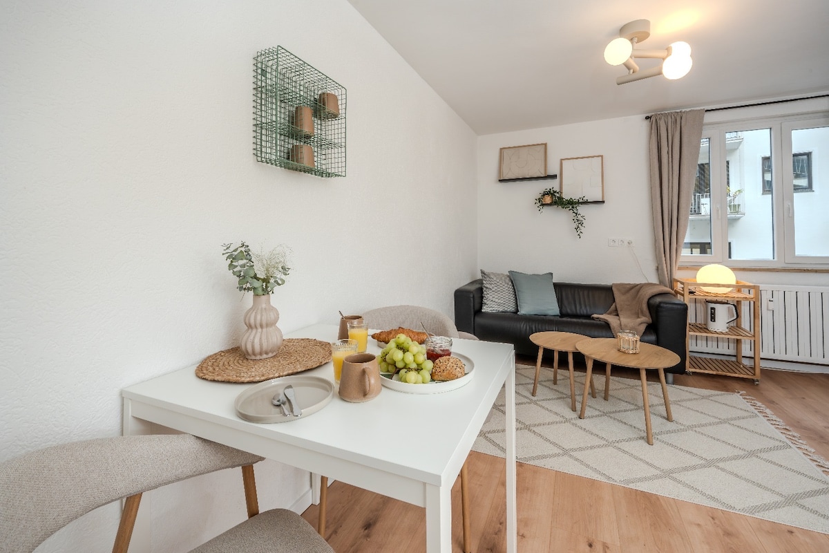 Die helle und zentrale Wohnung befindet sich direkt zwischen dem Ringpark und Südbahnhof Würzburgs. Ausgerichtet ist sie für bis zu vier Übernachtungsgäste. Im Schlafzimmer befindet sich ein 1.60m breites Bett und im Wohnzimmer eine Schlafcouch mit ebenfalls 1.60m Breite. Die Küche ist grundausgestattet. Das Badezimmer verfügt neben einer geräumigen Duschwanne ebenfalls über einen Waschtrockner, wodurch auch längere Aufenthalte möglich sind.