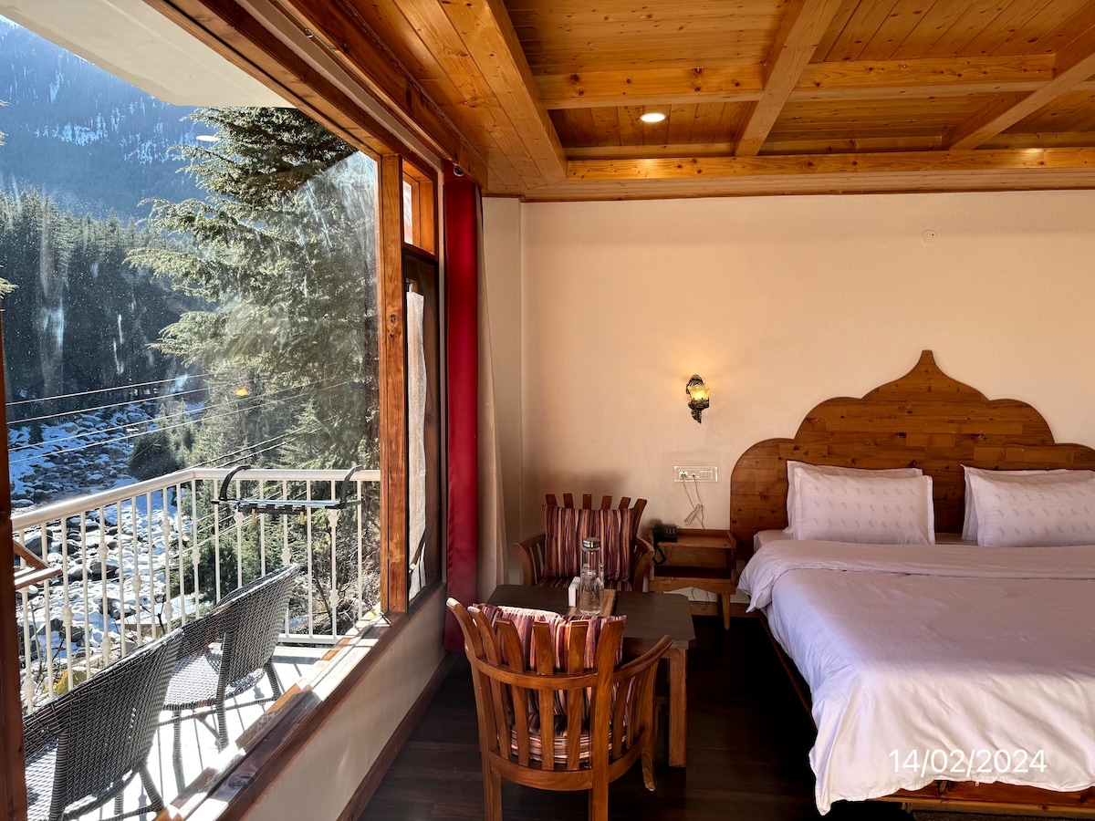 we are a boutique b n b located in heart of manali valley . we have rooms with private balcony facing the mountains and common spaces to relax or work . we offer high speed wifi and gated parking.our property is located just 1.5 km from the mall road and 3 km from the private bus stand . we as a host would help you out with arranging taxi ,local spots, renting bikes etc . We also have an in house COFFEE SHOP and cafe. KINDLY NOTE breakfast is not inclusive Heaters are chargeable extra