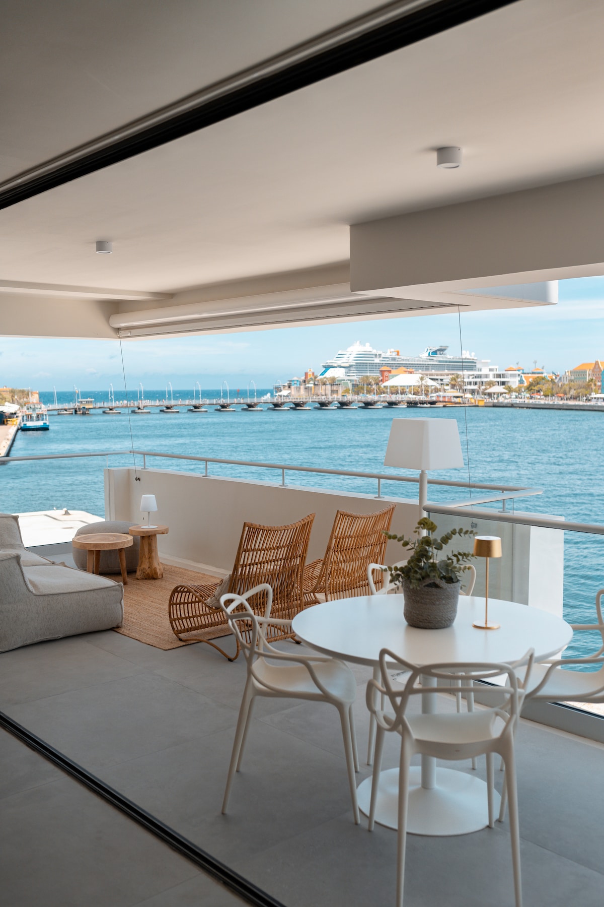 Stijlvol nieuw appartement in hartje Unesco-werelderfgoedgebied Willemstad met panoramisch uitzicht op Handelskade, Pontjesbrug, Julianabrug, Annabaai en zee. Beveiligd complex met zwembad, fitness en parkeerplaats. Het appartement ligt op loopafstand van restaurants, winkels en hotspots. Smaakvol ingericht met luxe meubels – een unieke plek om Curaçao te beleven. Ideaal voor een romantisch verblijf, een gezinsvakantie of city trip.