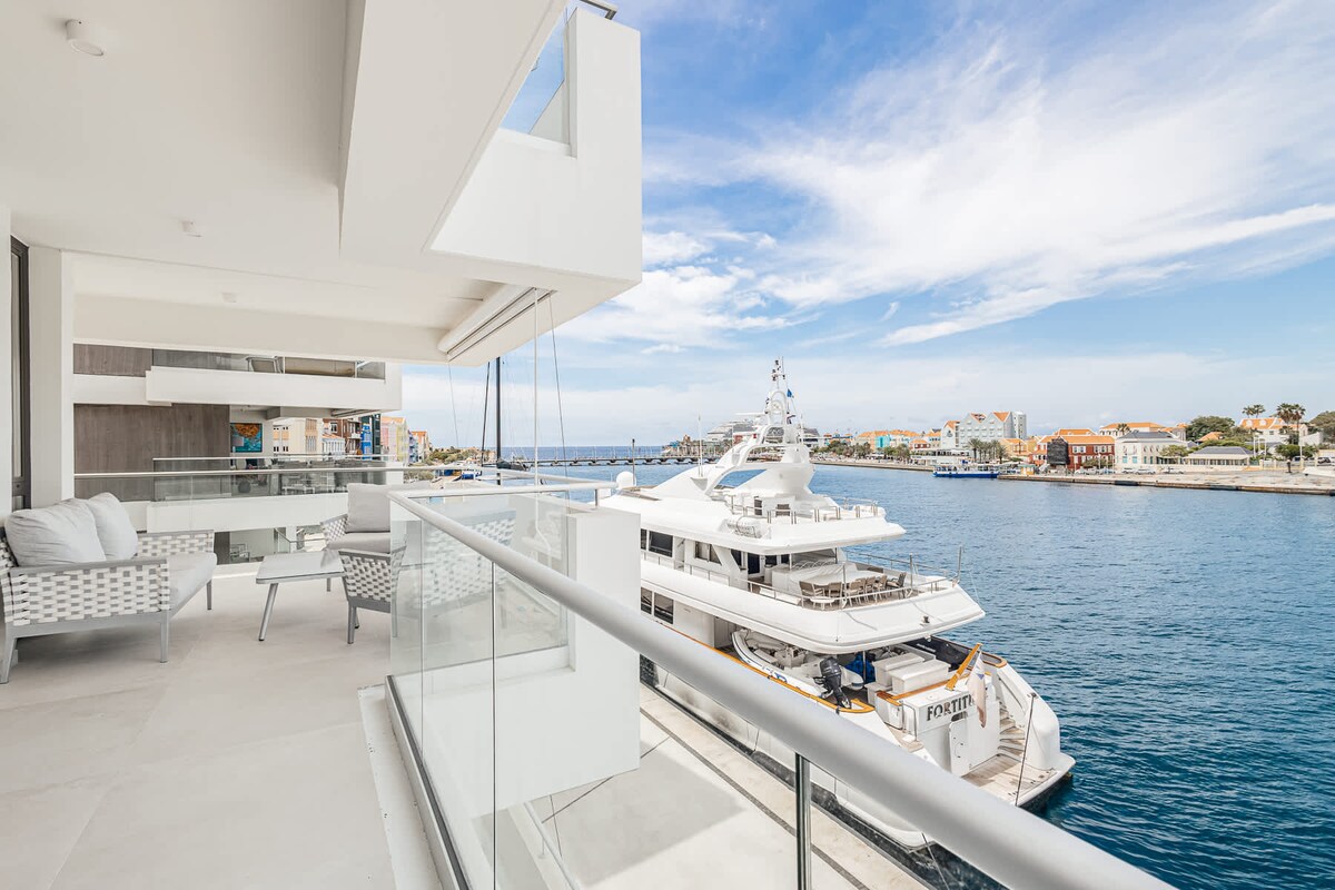 Indulge in luxury at The Aurum Marina, a stunning waterfront apartment in Willemstad, Curaçao. This exclusive apartment boasts breathtaking sea views, modern amenities, and a prime location. Enjoy the spacious living area, fully equipped kitchen, and elegant finishes. Relax on your private balcony and soak in the beauty of the Caribbean. Perfect for those seeking comfort, privacy, and sophistication in a premium waterfront setting.