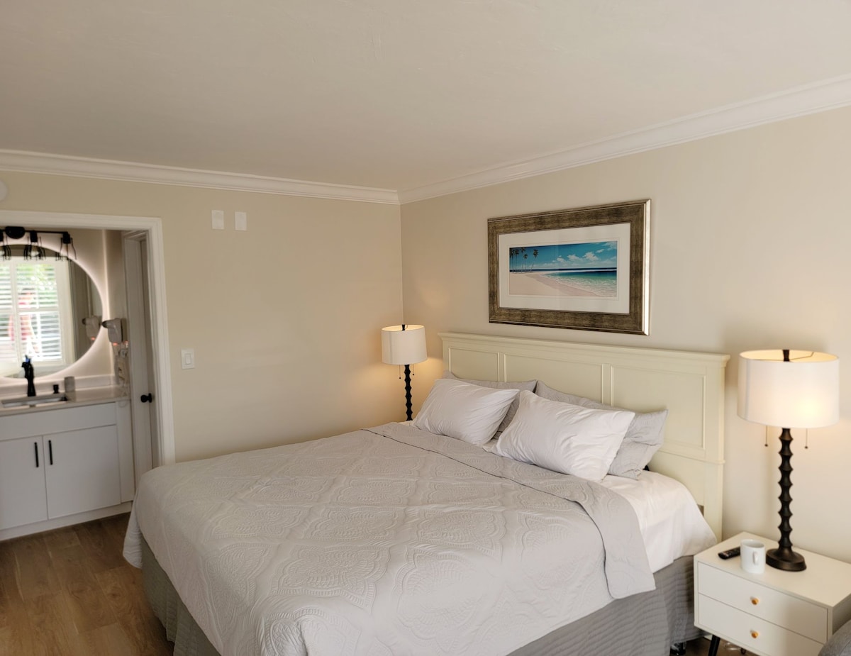 2024 Beautifully Remodeled Unit! Located 1 block from Naples Pier( to be rebuilt)and 3rd Ave Famous Dining and Shopping. Private entrance to unit with designated parking. The pool is outside your door for easy access. The unit provides a master suite with a king mattress and the extra room has 2 twins that can convert into a king. Please request upon booking. A laundry facility is located on the premises. Kitchenette provides cooktop and microwave/convection oven & a small refridgerator.