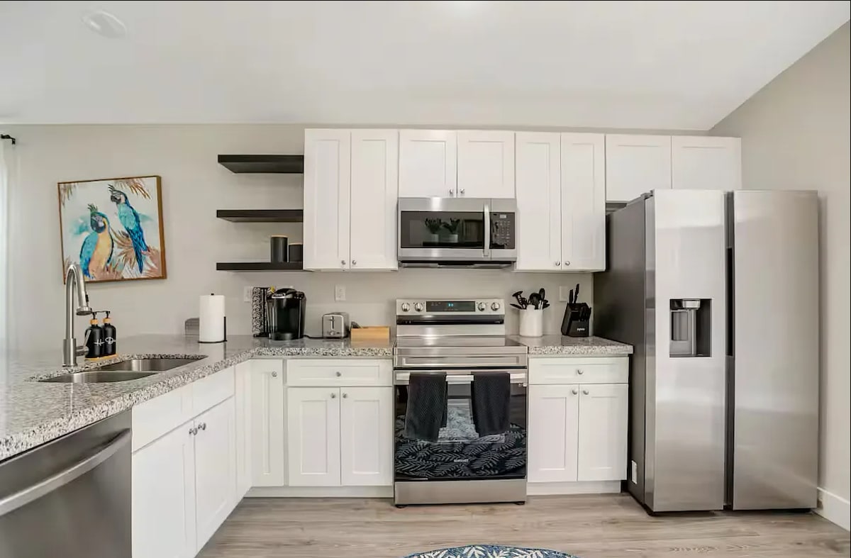 平均评分 5 分(满分 5 分),共 18 条评价*新房源* 5分钟到5th | 加热泳池 | 私人院子 | 10分钟到海滩