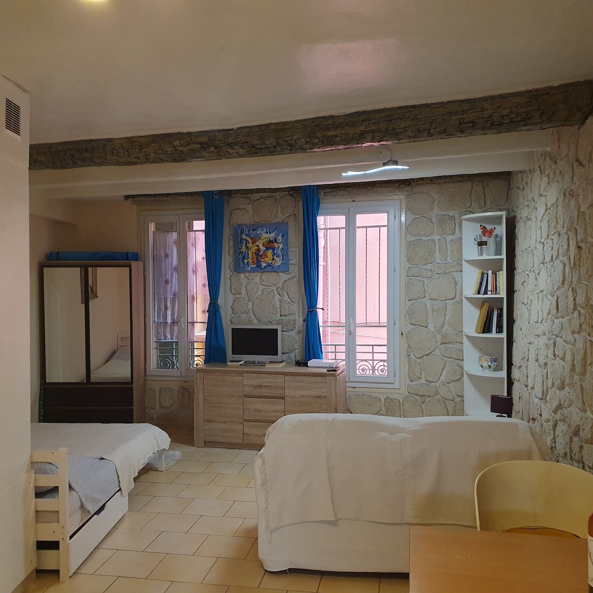 *REFURBISHED!!* Charming 28m2 studio in the Old City, a stone's throw from Place Garibaldi and the Port. The Old City consists of a labyrinth of alleys, stairs, and typically French eateries. The studio itself is located on the ground floor (US: first floor) with a private entrance. Fully equipped with kitchen utensils, hairdryer, iron, WiFi, telly, fresh towels and bed linen, shower supplies, washing machine, water kettle, fan, coffee machine. Tram station at 200 m: Garibaldi / Le Château.
