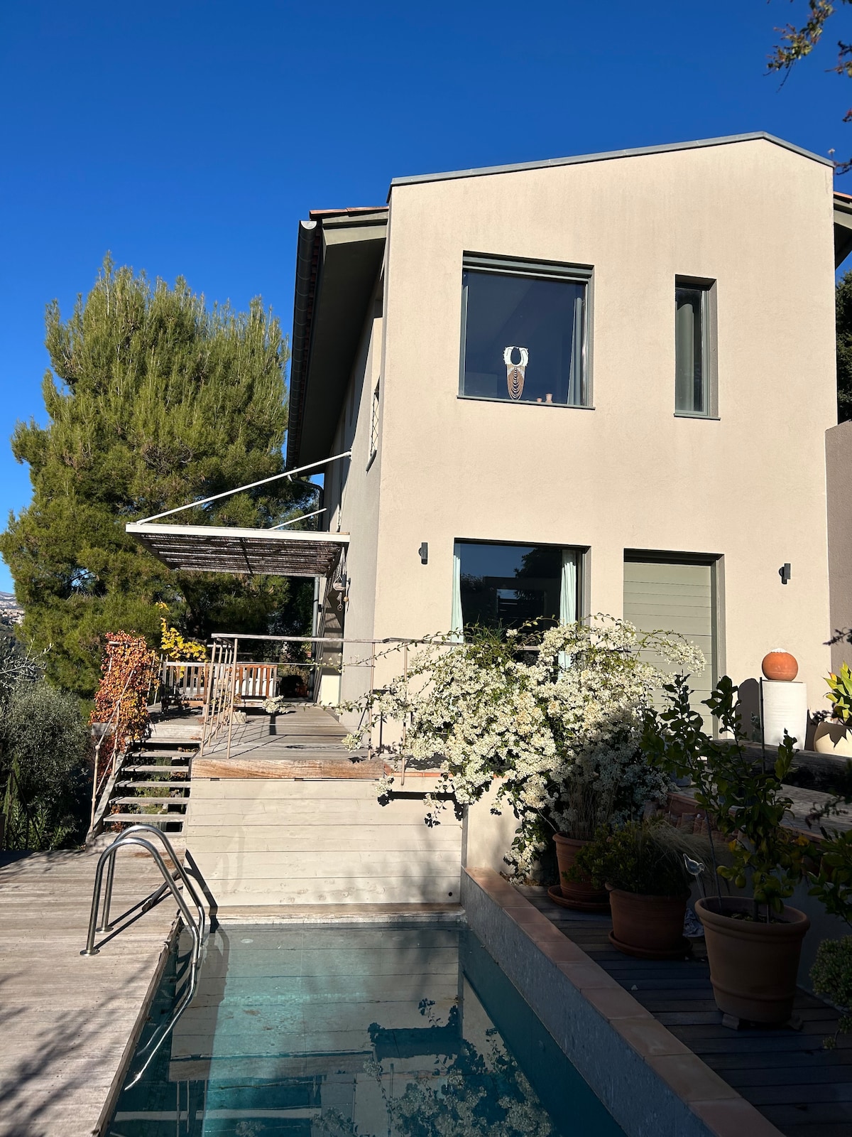 Guest quiet pool free accessibility for you and us. 2 rooms shower room and toilet. fully equipped kitchen. Parking right next to the lodging. Near the village 15 mn walk. Drive 25 mn from Nice International Airport. 15 mn by car from train. Bus 5 mn walk. free wifi. We Will be happy to receive you, sometime Share the family meal/apéritif with us the WE