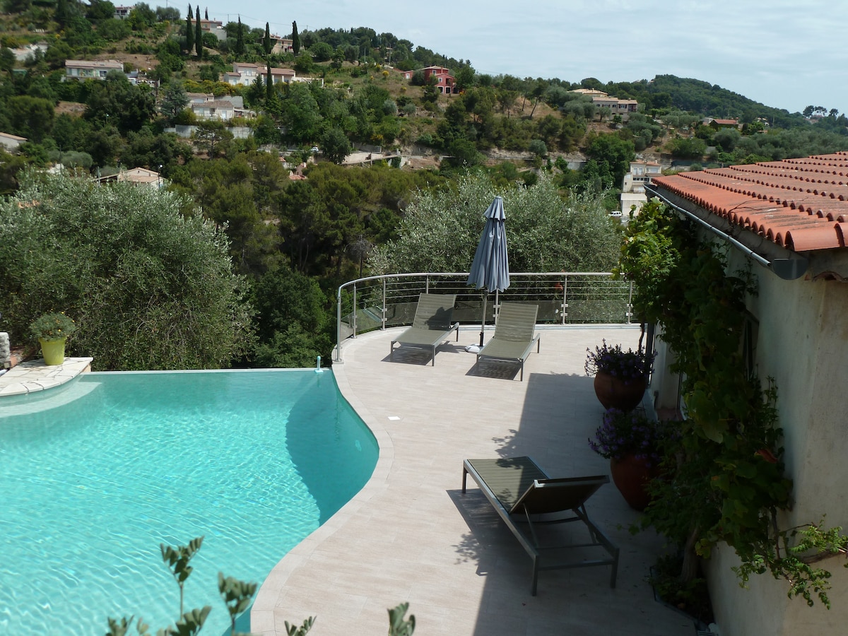 Villa Jumelée 130 m2, quartier résidentiel, lotissement sécurisé. Récente, Piscine /Jacuzzi . Barbecue Entièrement climatisée. 3 chambres / 2 salles de bain / 2 wc / Cuisine équipée / Salon sejour / Dressing / 5 TV / Wifi.coffrefort Plages a proximité (3,5 km) Commerces (800 m). Centre multi enseignes Polygone Riviera (1,5 km). A 15 min de Nice 5 personnes (visiteurs compris même en journée) 1 voiture maximum. La villa devra être rendue dans le même état de propreté qu'à votre arrivée.
