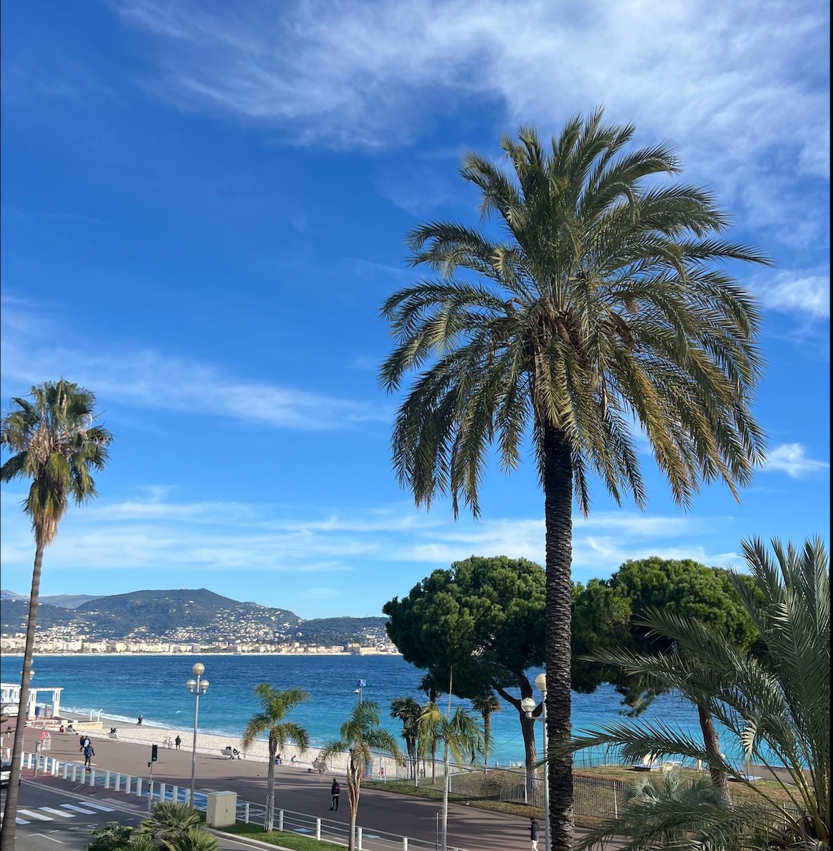 Das außergewöhnliche Apartment befindet sich im 4. Stock eines Mehrfamilienhauses an der Promenade des Anglais, d.h. nur wenige Schritte vom Strand entfernt. Die Wohnung verfügt über ein großes Wohn-/Esszimmer mit einer offenen Küche sowie 2 Schlafzimmer, 2 Bäder und eine große Terrasse. Die Einrichtung ist stilvoll-lässig. Der großzügige Balkon ist auf das Meer ausgerichtet und hat (fast) den ganzen Tag Sonne. Zum Stadtzentrum sind es 15 Minuten zu Fuß oder 5 Minuten mit der Straßenbahn.