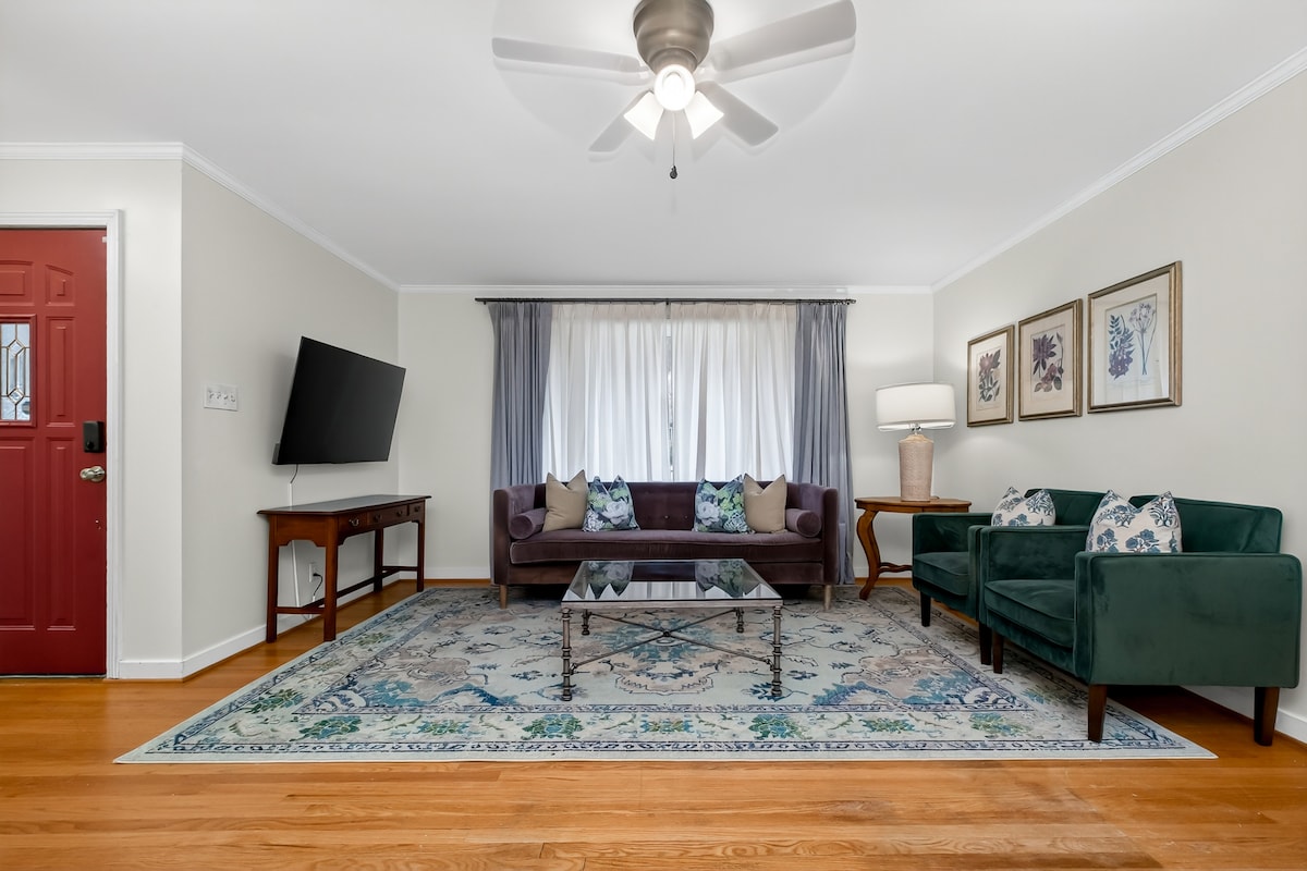 The whole crew will love the stylish and welcoming Blue Door: the perfect home away from home for your next stay. Blocks from Avondale Park and the neighborhood’s restaurants, shops, and bars. Like the outdoors? You’ll love the inviting front porch and spacious back deck, with a TV: perfect to watch the game. And, fido will have a blast in the fenced backyard. Brought to you by StayBham, featured in Birmingham Magazine for the coolest rentals in town.