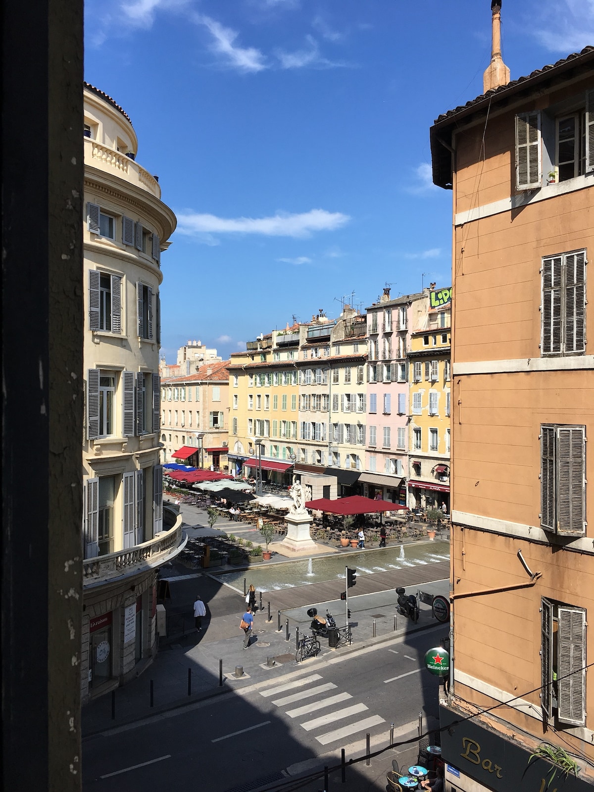 Emplacement idéal, centre-ville dans le quartier vivant du vieux-port, appartement dans un immeuble Pouillon de 43m2 avec balcon en première ligne sur le port. 4e étage. Digicode. Ascenseur. Proche toutes commodités et restaurants. Bus, métro et navettes maritimes au pied de l’immeuble. Parking payant à 50m. Séjour/cuisine toute équipée avec machine a café nespresso, salle de bain avec douche à l’italienne, une chambre séparée avec lit 160x200. Consigne à bagages 50m.