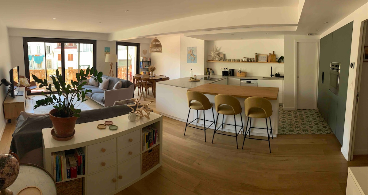 au 7ème étage avec ascenseur, l’appartement a été entièrement rénové en 2021 par un architecte. Grande pièce à vivre baignée de soleil, et cuisine ouverte face à la mer. Ces deux pièces ont un accès direct sur la terrasse Un grand couloir conduit au coin nuit où se situent les deux chambres climatisées. Emplacement exceptionnel: - 2 min de la plage des catalans - 3 min du Palais du Pharo - 10 min du Vieux Port Numéro d’enregistrement:13207015531DP