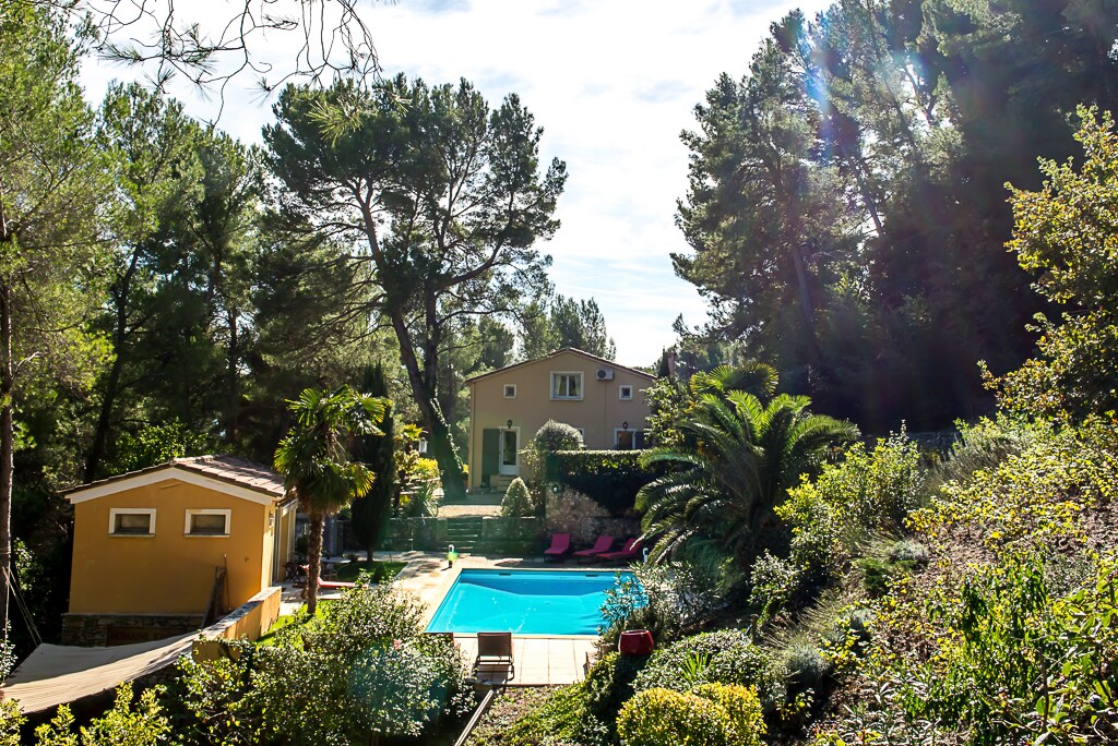 Maison de famille totalement rénovée. Location en chambre d'hôtes de 2 personnes (lit double ou 2 lits simples) avec petit déjeuner inclus. La maison est entièrement privatisée, avec un accès partagé à la piscine (avec horaires) et au jardin. Vous serez dans un cadre unique, au coeur des collines de Pagnol. En pleine nature, vous pouvez faire de nombreuses balades tout en étant à 20mn en voiture du coeur de Marseille et 30 mn des plages et calanques.