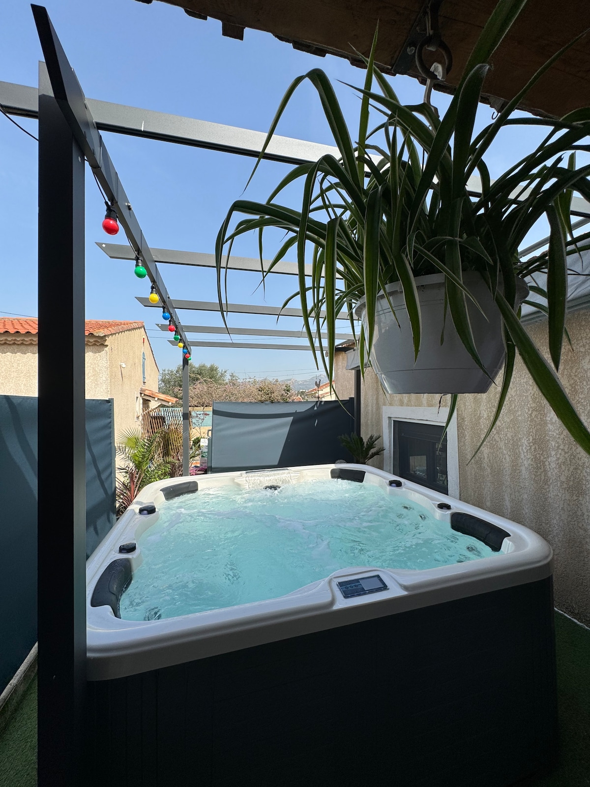 Détendez-vous dans ce logement unique et tranquille de 45m2 Situé en pleine nature , ce logement est idéalement placé , à quelques minutes des grands axes autoroutiers, de la gare TGV d’Aix et de l’aéroport Marseille Provence Vous aurez un spa privatif chauffé à 37 degrés et un vidéo projecteur pour vos soirées spa et cinema ! Une terrasse de 30m2 vous permettra de profiter d’un extérieur paisible et arboré.