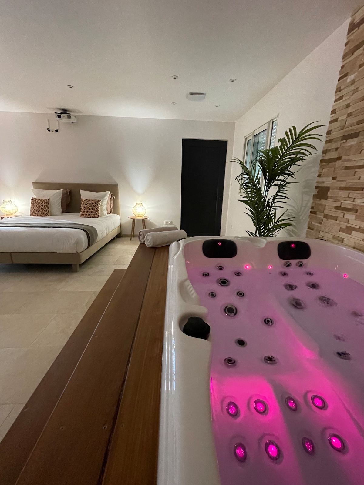 配备按摩浴缸和视频投影仪的豪华套房