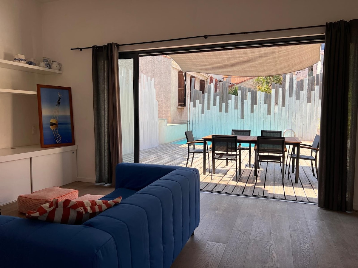 A 300m de la mer, cette maison de ville a été créée pour vivre idéalement ses vacances dans un des quartiers les plus emblématiques de Marseille: le Vallon des Auffes. Sa cuisine ouverte avec son salon de 60 m2 au haut plafond vous donne un sentiment de liberté grâce à sa terrasse et sa piscine qui sont dans le même prolongement. Dans les étages les 4 chambres disposent chacune d'une terrasse. Garage pour 1 voiture. Maison avec escaliers déconseillée aux personnes âgées et enfants - 6 ans !
