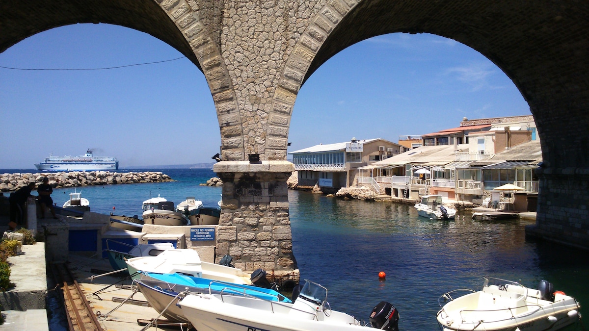 Kalimera !!! Nous sommes à 10 pas de la mer ... Cabanon de pêcheur de 30 m2 tout confort au Vallon des Auffes, port pittoresque du centre ville de Marseille. Au Rdc cuisine ouverte sur séjour, salle à manger, canapé lit 1place , salle de bain. À l’étage chambre très confortable, lit double, clim, nombreux rangements. TV / Wifi Fibre. A l'extérieur coin repas et bronzette vue sur le Port. Nombreuses places de parking gratuites et commerces à proximité.