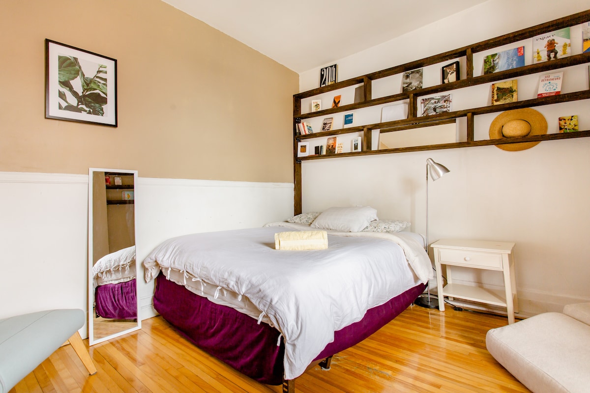 Numéro CITQ: 291093 For a stay in the heart of a vibrant neighborhood, the Plateau Mont-Royal, the Secret Studio—named for its unique access and unusual location—has been welcoming guests since 2011. This studio is ideal for travelers seeking something different from generic accommodations. Please note that access to the apartment is via a spiral staircase, which may be a bit challenging if you’re traveling with large suitcases. For more details, please see the description below. :)