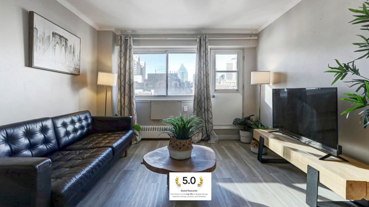 Relax with the whole family at this peaceful and stylish downtown getaway. This spacious apartment features 2 queen beds, a pull-out sofa, and a private balcony—ideal for both short visits and extended stays. Located steps from Square Victoria and minutes from Old Montreal, you’ll be perfectly situated to explore the best of the city.