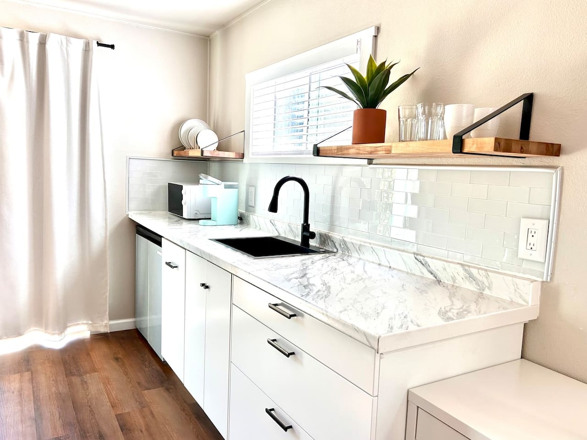 This stylish newly renovated 1 BR in-law unit has anything you need to feel at home. Enjoy a king bed, 55" smart TV, cozy nook with a twin bed, washer/dryer, level 2 EV charger, garden with flowers, vegetables and fruit trees. Fully equipped kitchenette and dining space. Close to midtown, downtown, Golden One, Cal Expo, Discovery Park, shopping, restaurants, freeway and light-rail. Near numerous hospitals. Baby gear available. Hiking & river access nearby. Day trips to SF, Tahoe, Napa & more.