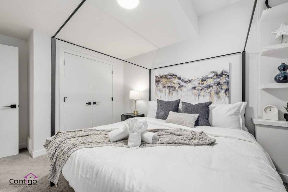 Welcome to the Ottewell Suite! Our newly built (March 2022) garden suite is located above our double garage and has it's own dedicated outdoor parking and private entrance. ⇾ Self check-in via smart lock. ⇾ Bright and open with vaulted ceilings ⇾ Full in-suite laundry ⇾ Large closet and queen size bed ⇾ Private balcony with bistro seating ⇾ Smart TV with fast wifi included ⇾ Fully stocked kitchen with eating bar ⇾ Air Conditioning Business Licence #419831993-002