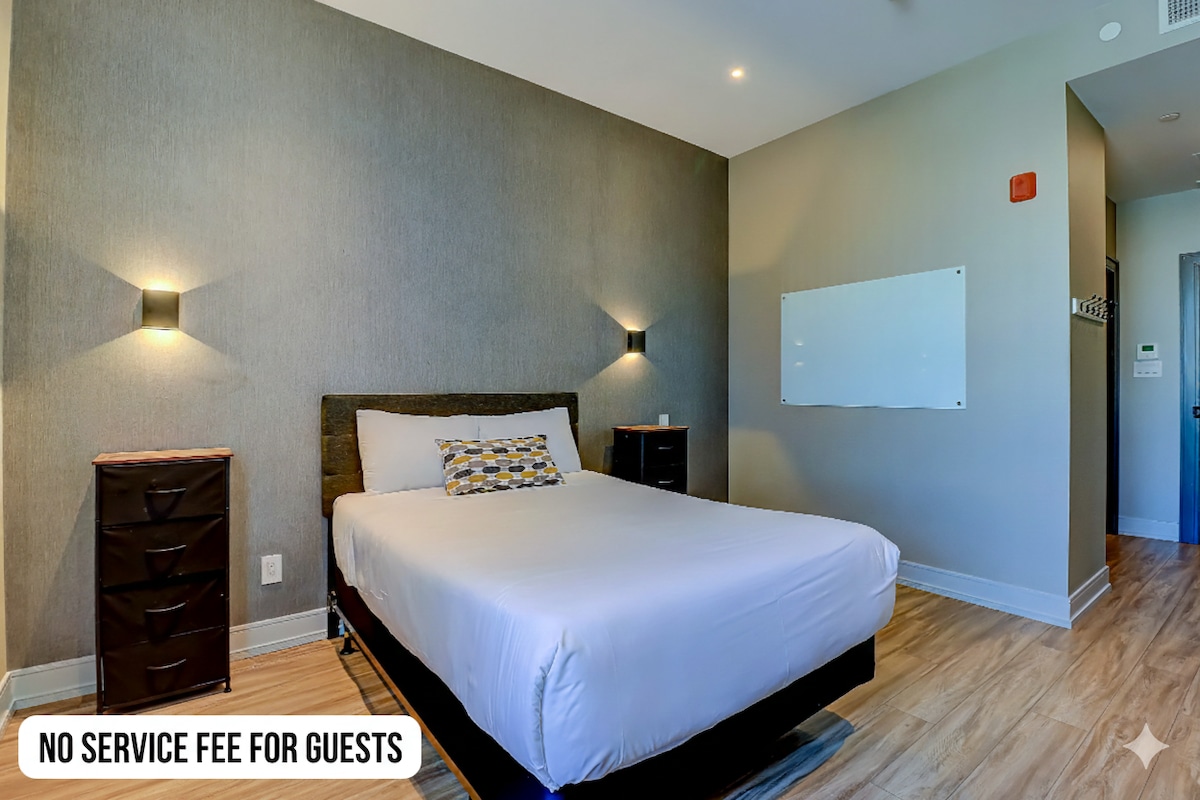 Casa Hotels welcomes you to this stylish 2-bedroom suite in lively Leslieville. Featuring spacious bedrooms, a fully equipped kitchen, in-suite laundry, high-speed WiFi, cable TV, and free parking for one car, it blends comfort with convenience. Enjoy 24/7 support and attentive service, then step outside to explore trendy cafés, boutique shops, top restaurants, and local attractions just minutes from your door.