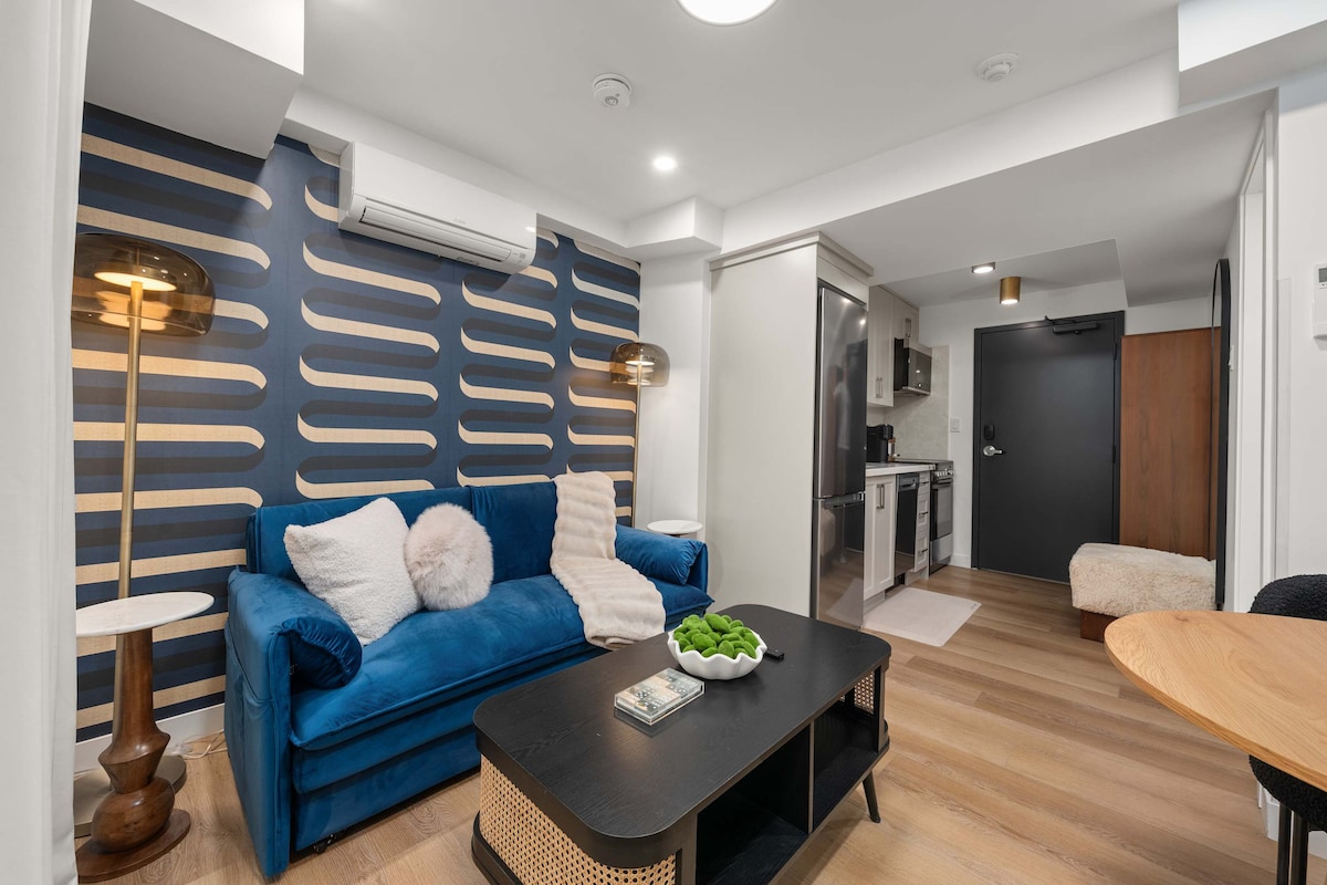 Unwind in this bright, pet-friendly 2BR suite in Toronto’s vibrant Leslieville. Surrounded by indie cafés, local shops, and easy transit, this urban gem offers a full kitchen, a cozy lounge with a sofa bed and 55" Smart TV, plus a King and Queen bedroom—perfect for up to 5 guests. Stay comfortable year-round with a portable air conditioner for added cooling. A stylish home base for exploring the city like a local. Book your stay today!
