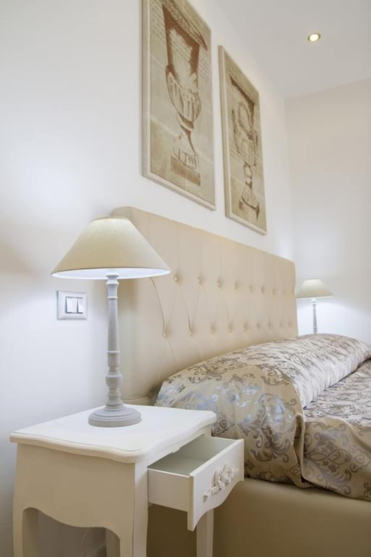 La camera da letto è nuova ed ha il bagno privato ad uso esclusivo, con ingresso dall'interno della camera. La stanza dispone di aria condizionata e termosifoni per garantire una temperatura sempre perfetta, sia nei mesi più caldi che nei mesi più freddi dell'anno.