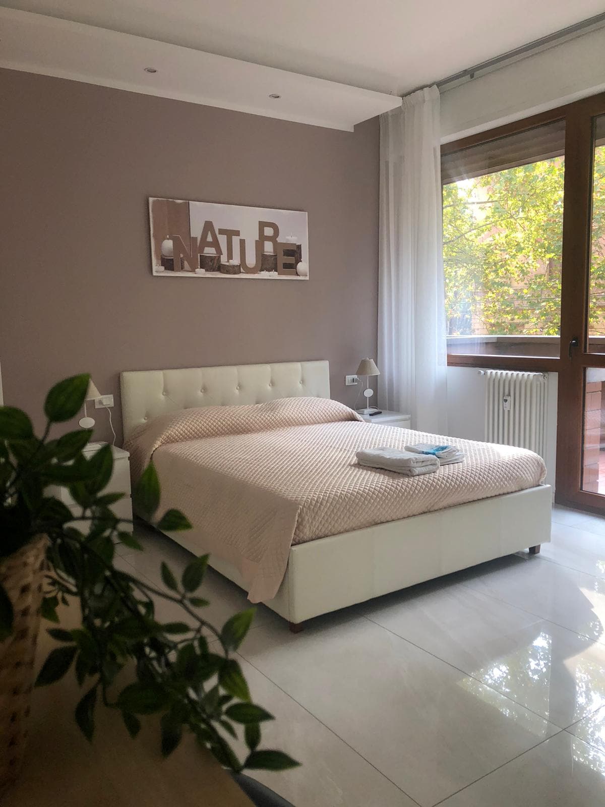 Appartamento grazioso e molto curato, situato in un quartiere tranquillo e immerso nel verde, comodo alla tangenziale e ben servito dai mezzi pubblici. E' presente un parcheggio condominiale sempre libero e protetto da cancello. Il bagno è in condivisione solo con il proprietario, unico inquilino. Viene offerta la colazione ma la cucina non è a disposizione degli ospiti. E' esclusa dal prezzo la tassa di soggiorno (pari a 5,80 € a persona per ogni notte) che va corrisposta all'arrivo.