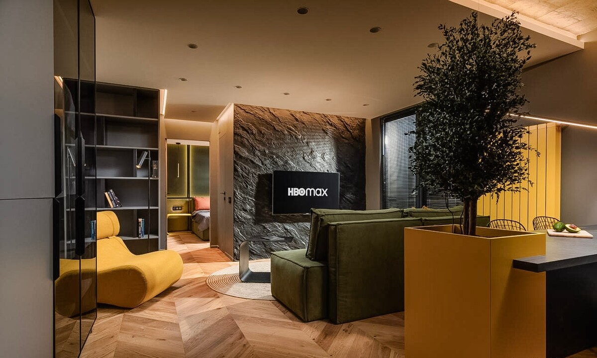 Experience the charm of our urban loft in the heart of the city! Enjoy the peace in our elegant bedroom, with wide windows that fill the room with sunlight, and settle into a luxurious marble bathroom. Located in a lovely neighborhood, this inviting space offers a fully equipped kitchen, a relaxing living area, and a small balcony. Perfect for the modern traveler who values style and comfort. Book your stay - delight in the simple luxuries and make this loft your personal hideaway.