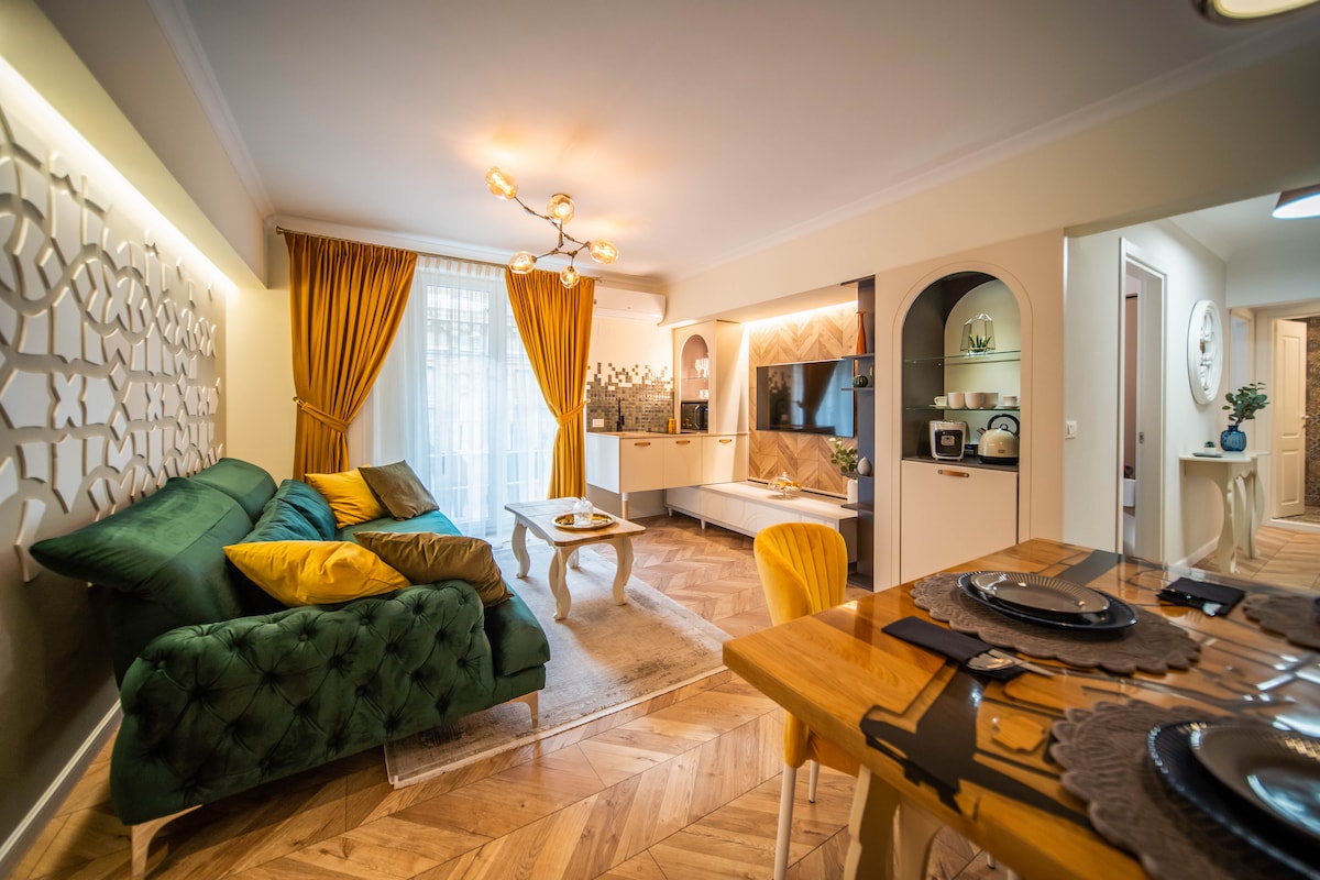 Modern and well-equipped apartment located in one of the most stylish and well-known areas of Bucharest. You will be literally surrounded in walking distance by museums, concert halls, banks, fancy shops, restaurants, and pubs. Thanks to a very good orientation, you will be staying in the heart of the city without even noticing the crowded street vibes from the peacefulness and quietness of the interior space. ✔️ Best suitable for business travelers or couples.