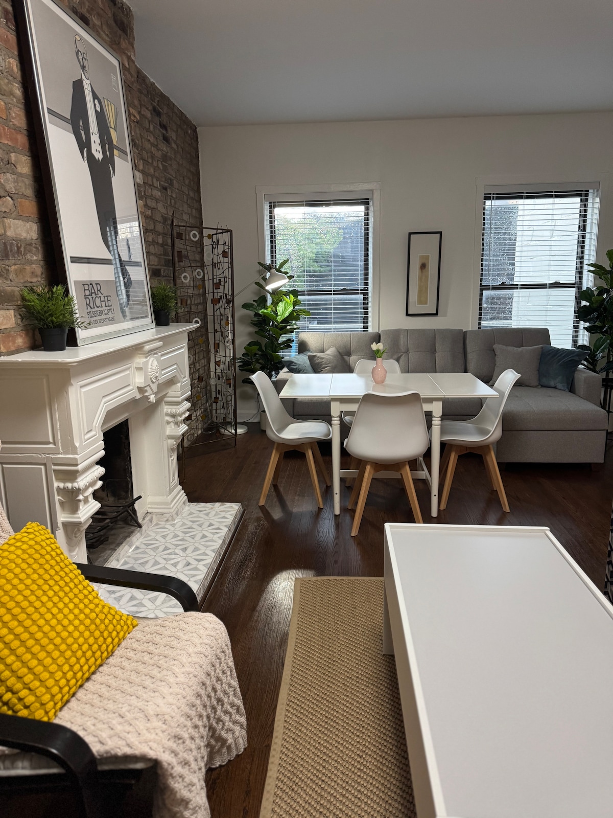 • 1,750ft² / 162m² . My home is on the second floor of a four flat Itallian Brick Building . You have 2 flight of stairs to Climb to enter. • Walk Score 95 (walk to cafe's, bars, eating, nightlife, etc.) • Biker's paradise • Fully equipped + stocked kitchen • Extremely safe neighborhood • Onsite, secured parking • Onsite washer + dryer ➠ 5 min walk to the Lincoln Park ➠ 10 min drive to Downtown Chicago ➠ 30 min drive to O'Hare Chicago Airport fireplace is not operational.