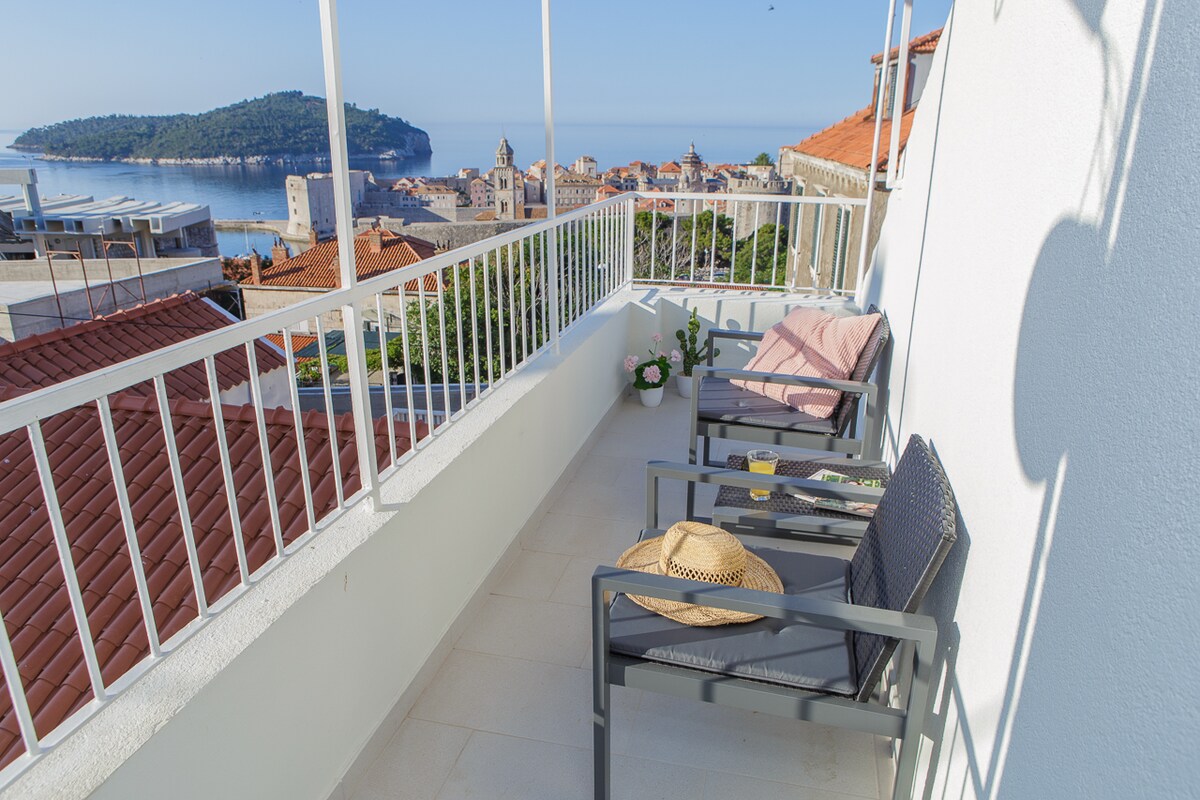 Enjoy sweeping, one-of-a-kind views of Dubrovnik's old town and the Mediterranean from your balcony. Tastefully furnished, comfortable, spacious and light-filled apartment in a quiet, charming hillside neighborhood, with plentiful amenities and reserved parking in front. The apartment has newly renovated bathroom and kitchen, and is equipped with Wi-Fi, A/C and heating, cable TV, Bluetooth speaker, washer and dryer, comfy mattresses and pillows, cotton bedding, luxury toiletries and more.