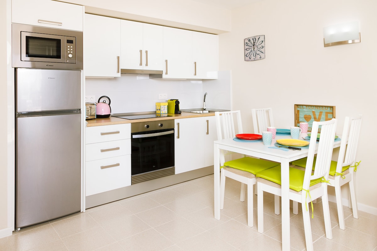 This centrally located apartment is ideally positioned, just a few steps from the beautiful beach-front promenade. Situated between the old and new town, it offers easy access to shops, restaurants, bars, pools, supermarket and the beach, which are all just a few minutes walk away. The accommodation includes a spacious living/dining area with modern fitted kitchen, two double bedrooms and a shower room. The outside area provides plenty of room to enjoy relaxing, sunbathing & Al fresco dining.