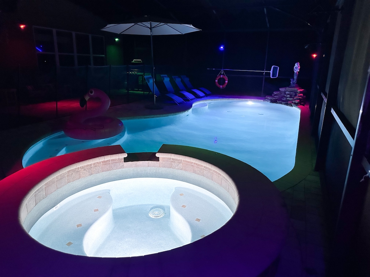 你好, bienvenidos! Step into your spacious haven, designed to comfortably sleep 9+ guests. Just minutes from Disney, Universal, SeaWorld, and International Drive, Enjoy convenient shopping centers nearby for all your needs and leisure activities. From a children's playground to private backyard tub (not a hot tub) and game room, we have everything for you. Unwind in a space that ensures a memorable stay. Perfect for families and groups, THIS is your ideal getaway!